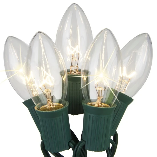 - 25 clear twinkle C9 lights on green wire, 25.0′ total length.