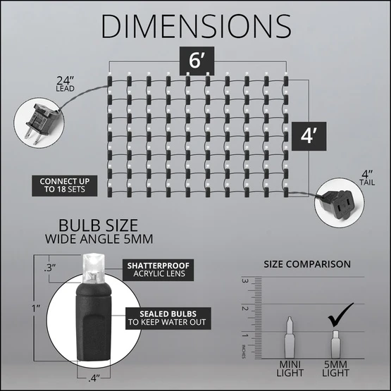 Inspire your Christmas light display with the abundance and beauty found only in nature this holiday season. Rich green LED bulbs are environmentally friendly, long lasting and visually stunning. We wove these glittering gems into a commercial quality, weather resistant net of brilliance allowing you to create professional quality displays with ease! Wrap your bushes and shrubbery in green LED net lights to create cheerful holiday displays in no time and spend more time enjoying your Christmas this year!