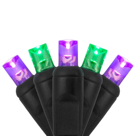 Say hello to the new kid on the block and the most popular LED on the market. The 5mm LED bulb is smaller than your traditional mini light yet its concave lens provides superior brightness and disperses light uniformly in all directions. You spoke and we listened! This green/purple light string comes from your most popular color combinations, all in a single LED string. These are the lights you want for wrapping indoor and outdoor trees, wreaths and garland.