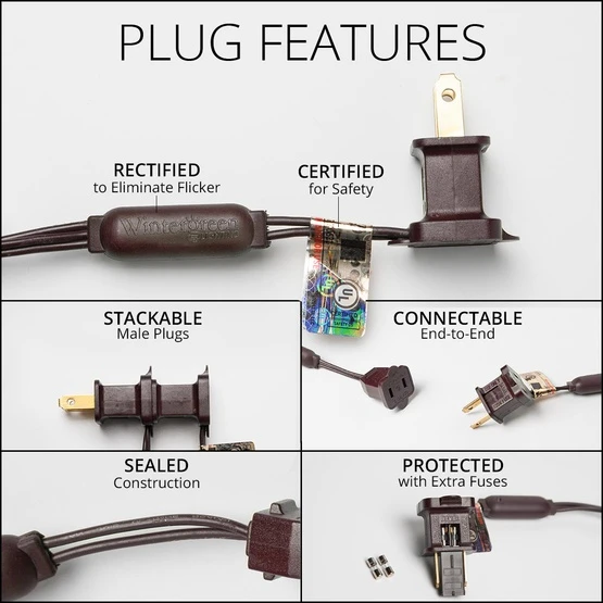 - Cover more surface area with fewer power sources with convenient stackable plugs