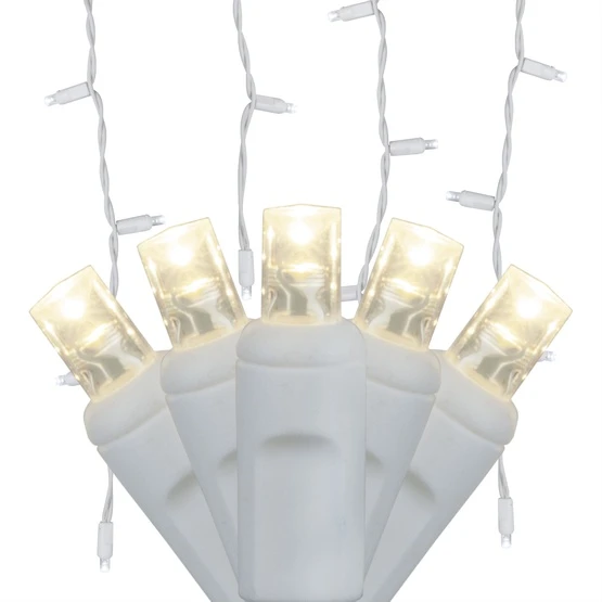 May your holidays be merry and bright when you hang these cozy lights! Our warm white 5mm LED icicle lights are brilliantly luminous while remaining cool to the touch. Not to mention these little gems will save you time any money with energy efficiency and virtually unbreakable design! White wire hides flawlessly among faux snow and sheer fabric and UL listed strings allow for multiple sets to be connected, making them perfect for a variety of lighting applications. Hang warm white LED lights indoors or out to create a warm welcome home any time of year!
