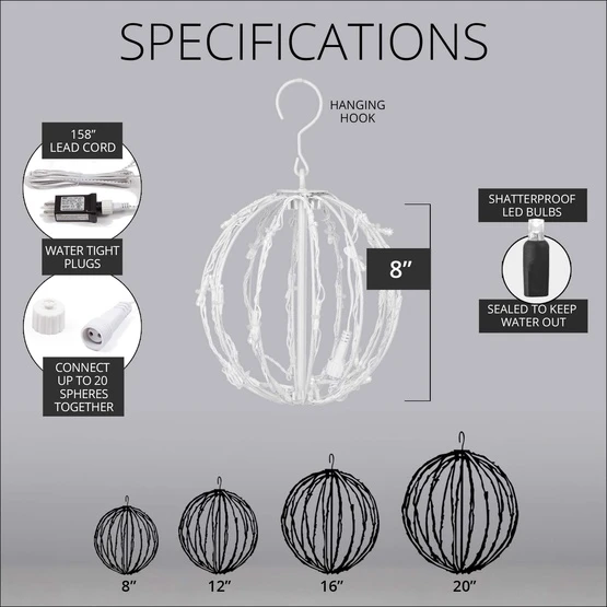 - 8″ Christmas light ball with 32 blue LED lights