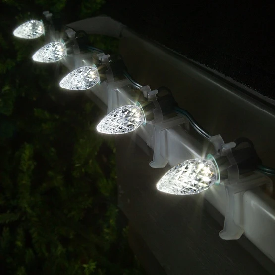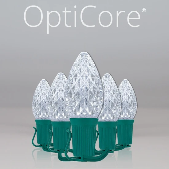 Explore all of the endless possibilities for displaying cool white LED Christmas lights around your home this year. Energy efficient cool white LED bulbs create a perfect backdrop for any holiday decor to shine, and our commercial quality, weather resistant construction ensures your lights will maintain professional display for years. Opticore bulbs emit superior, vibrant light while maintaining the unbreakable, energy efficient benefits you want. Plus, these string lights are end-to-end connectable, so you can connect different lengths together up to 1,000 feet (960 max watts). Green wire is the perfect choice for displaying lights on bushes or a wide range of other natural backdrops. Hang these lights along the roof, across a porch or fence, or wrap them around trees for your most exciting holiday light display ever!