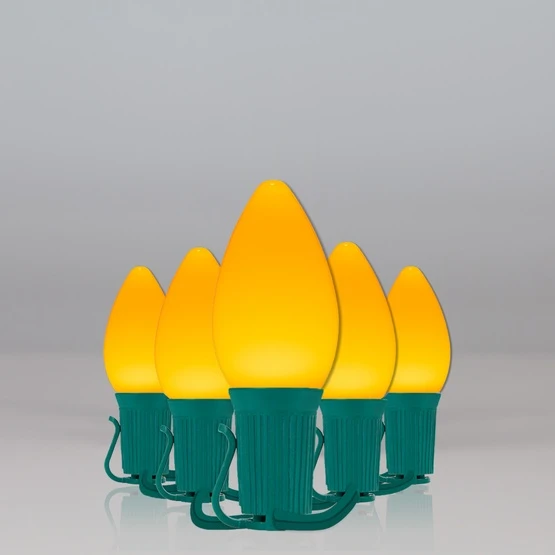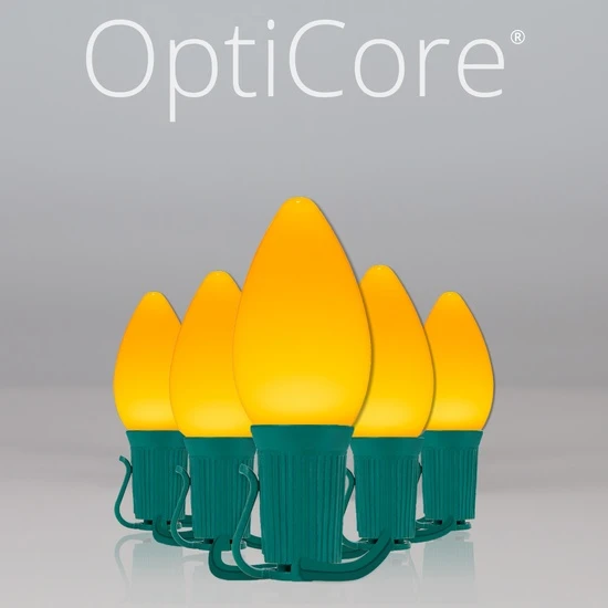 Gold LED bulbs provide a wondrous warm glow and provide all the energy efficiency and long life of LED partnered with the durability of our weather resistant, easy-to-install commercial stringers. Opticore bulbs emit superior, vibrant light while maintaining the unbreakable, energy efficient benefits you want. Plus, these string lights are end-to-end connectable, so you can connect different lengths together up to 1,000 feet (960 max watts). Green wire is the perfect choice for displaying lights on bushes or a wide range of other natural backdrops. Hang these lights along the roof, across a porch or fence, or wrap them around trees for your most exciting holiday light display ever!