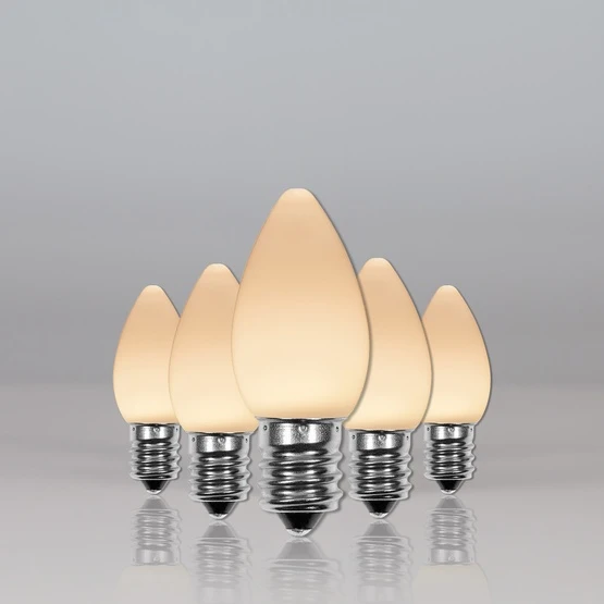 Celebrate under the classic glow of warm white C7 bulbs. These bright bulbs featuring SMD LED technology emit vibrant, radiating light and last even longer than traditional LEDs while still maintaining the virtually unbreakable, fade resistant, energy efficient benefits you love. Trim your Christmas tree or decorate for a wedding with these elegant smooth LED bulbs.
