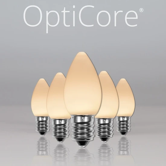 - Warm White C7 OptiCore LED bulbs, E12 base