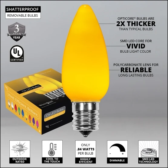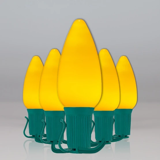 Gold LED bulbs provide a wondrous warm glow and provide all the energy efficiency and long life of LED partnered with the durability of our weather resistant, easy-to-install commercial stringers. Opticore bulbs emit superior, vibrant light while maintaining the unbreakable, energy efficient benefits you want. Plus, these string lights are end-to-end connectable, so you can connect different lengths together up to 1,000 feet (960 max watts). Green wire is the perfect choice for displaying lights on bushes or a wide range of other natural backdrops. Hang these lights along the roof, across a porch or fence, or wrap them around trees for your most exciting holiday light display ever!