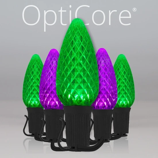 Purple and green are one of the most popular Halloween light color combinations, and with good reason: nothing creates an eerie glow like these two colors together. And our commercial grade strings and energy efficient LED bulbs combine to create a high impact, professional quality display that will deliver season after season. Opticore bulbs emit superior, vibrant light while maintaining the unbreakable, energy efficient benefits you want. Plus, these string lights are end-to-end connectable, so you can connect different lengths together up to 1,000 feet (960 max watts). Black wire disappears at night against most neutral-toned backgrounds, making it a great choice for lights any time of year. Hang these lights along the roof, across a porch or fence, or wrap them around trees for your most exciting holiday light display ever!