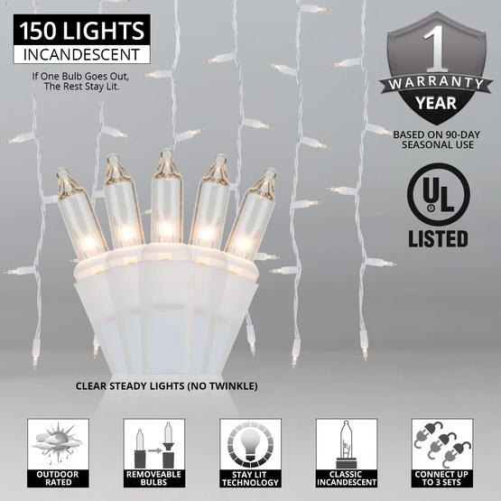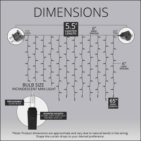Shower your home with brilliant, glittering light! Clear icicle light curtains are highly durable, weather resistant and provide professional quality lighting for a variety of applications. Hang light curtains inside windows or above patio spaces to creating mesmerizing illumination indoors or out.