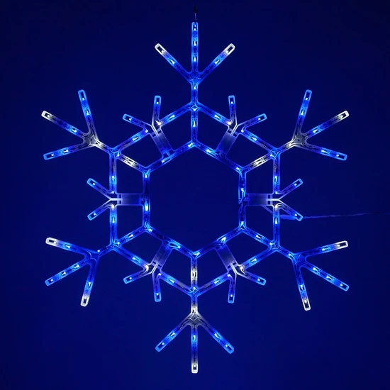 Illuminate your holiday decor with a LED blue and white snowflake motif. Hang this dazzling motif in windows, on fences, or from trees to create a magical winter wonderland. Energy efficient LED bulbs ensure that this decoration will last through many celebrations. When the holidays are over, fold this snowflake to save storage space. This unique motif is sure to make your Christmas bright.