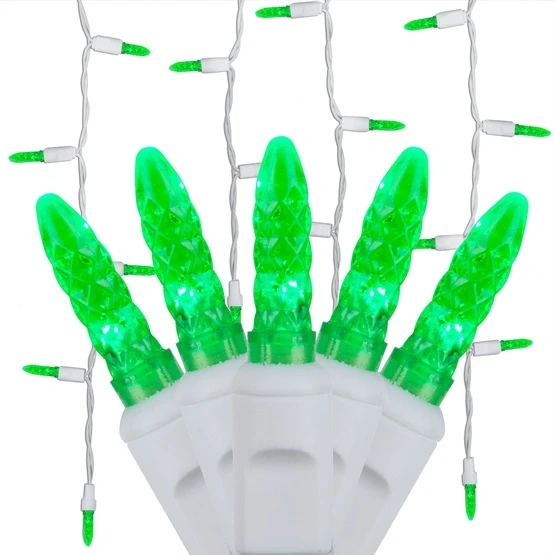 Have some fun with your holiday lights this year! Vivid green LED icicle lights are inspired by nature and innovative by design. Our commercial quality LED’s are environmentally friendly, highly durable and able to maintain brilliant illumination even in harsh weather conditions. Hang green icicle lights from the roof, along the fence or at your next party to create an atmosphere of festive lighting any time of year!