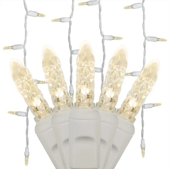 Greet guests with a warm welcome when you hang these luxurious lights. Commercial quality warm white LED icicle lights are highly durable, energy efficient and maintain professional display even after years of rough handling. Warm white icicle lights provide ambient lighting indoors and white wire blends flawlessly behind sheer fabric to create stunning illumination during special occasions.
