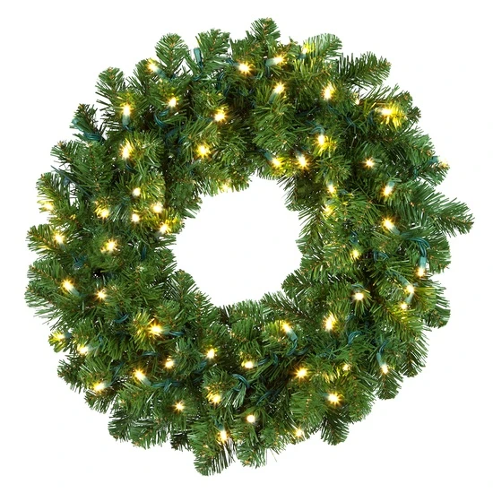 - 24″ Oregon Fir prelit wreath, brightly lit with 50 warm white LED lights