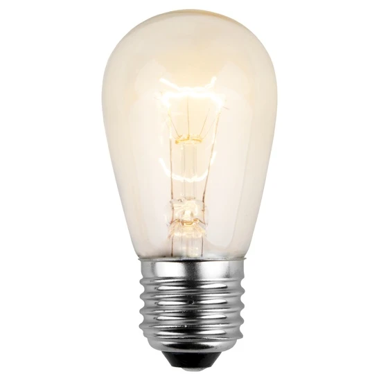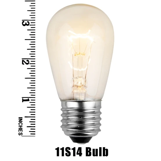 - Clear S14 bulbs, 11 watt, E26 – Medium base.